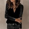 New Autumn Ladies Fashion Shiny Sequins Long Sleeve V-Neck Chic T-Shirt Women