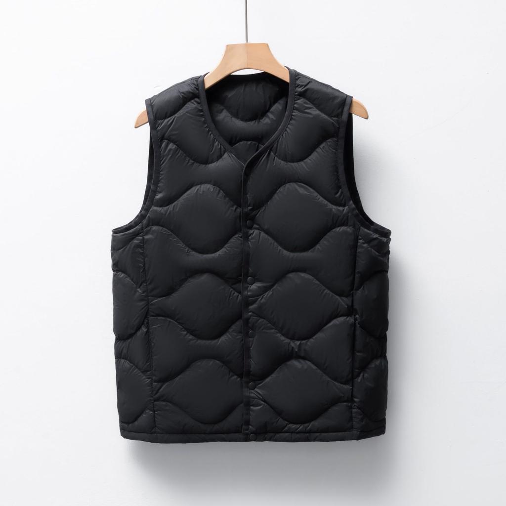 Men's Fleece Solid Color New Men's Round Neck V-neck Vest Down Jacket Vest Jacket