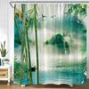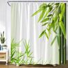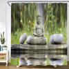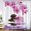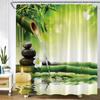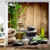 Zen Green Bamboo Shower Curtain Pink Flower Plant Black Stone Spa Garden Scenery Wall Hanging Fabric Bathroom Decor Curtains S