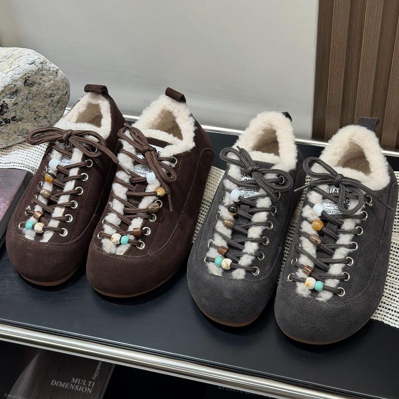 Inner Heightened Beaded Lambswool Plush Niche Casual Shoes Women's New Winter Thick-soled Warm Cotton Shoes