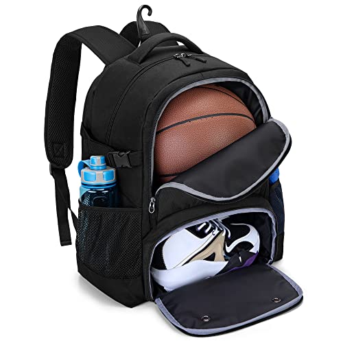 [DSLEAF] Basketball Backpack for Juniors, Basketball Backpack for Club Activities, Ball Storage, Soccer Backpack, Student/Adult (Black)