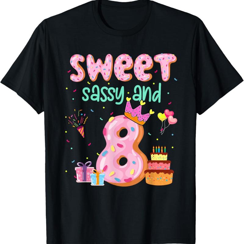 Sweet Sassy And Eight 8Th Birthday Girls Donut 8 Year Old T Shirt