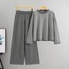 Spring and Autumn's New Fashion Set: Women's Round-neck Striped Sweater, Wide-leg Pants, Loose, Casual and Elegant, A Lazy Person's Outfit