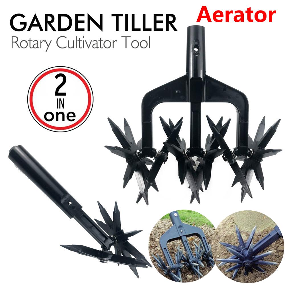 2 In 1 Garden Aerator Ventilated Scarifier Gardening Rotary Tiller Rotary Cultivator Tool Soil Plowing Tool for Garden Lawn Tool