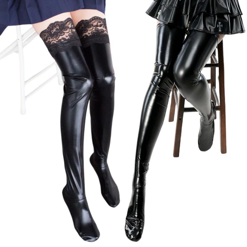 Black Sexy Patent Leather Boots Silicone Stay Up Thigh High Stockings Women Plus Size Party Socks Pole Dance Clubwear