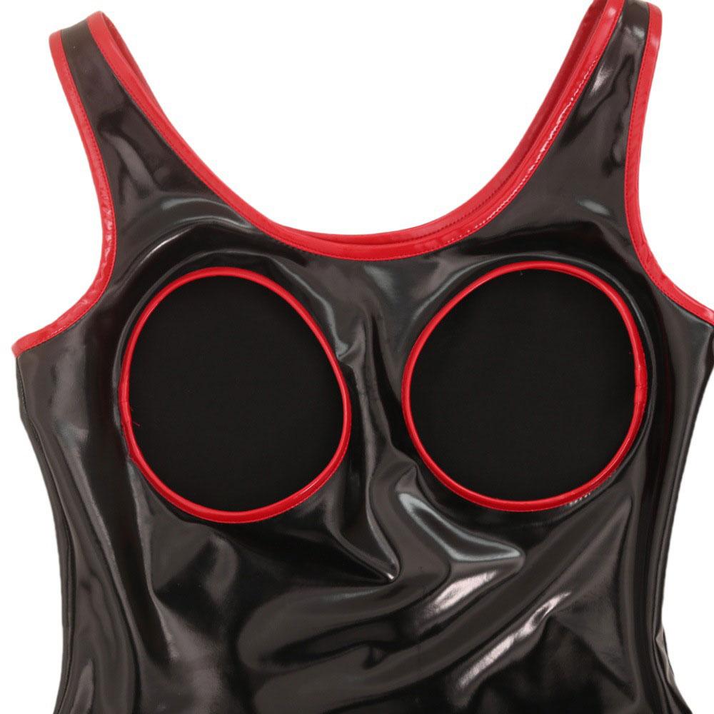 Women's Hollow Out Breast Wet Look PVC Shiny Bodysuit Tops Zipper Open Crotch Erotic Tights Body Teddies Clubwear PU Catsuit