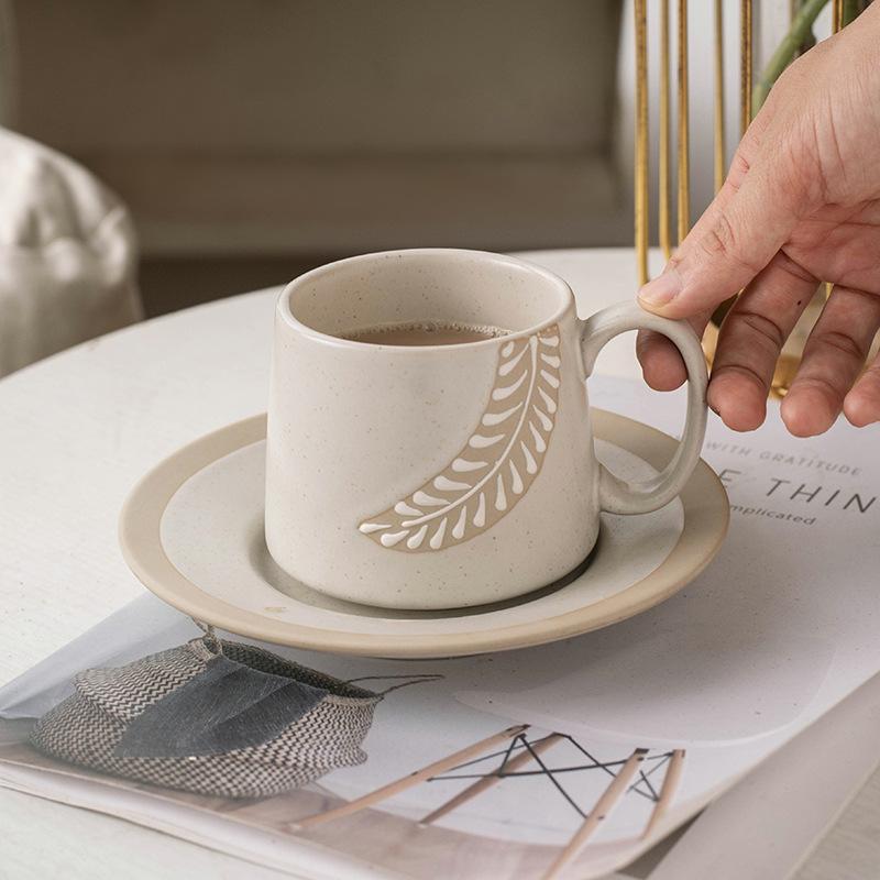 Ins Simple Ceramic Latte Cup Creative Set Mug, Office Afternoon Tea Coarse Pottery Coffee Cup Saucer