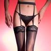 Sexy Glossy One-Piece Suspender Stockings8DHorse Oil Silky Hollow Out Hibiscus Lace Over-the-Knee Long Tube Garter Black Stockin