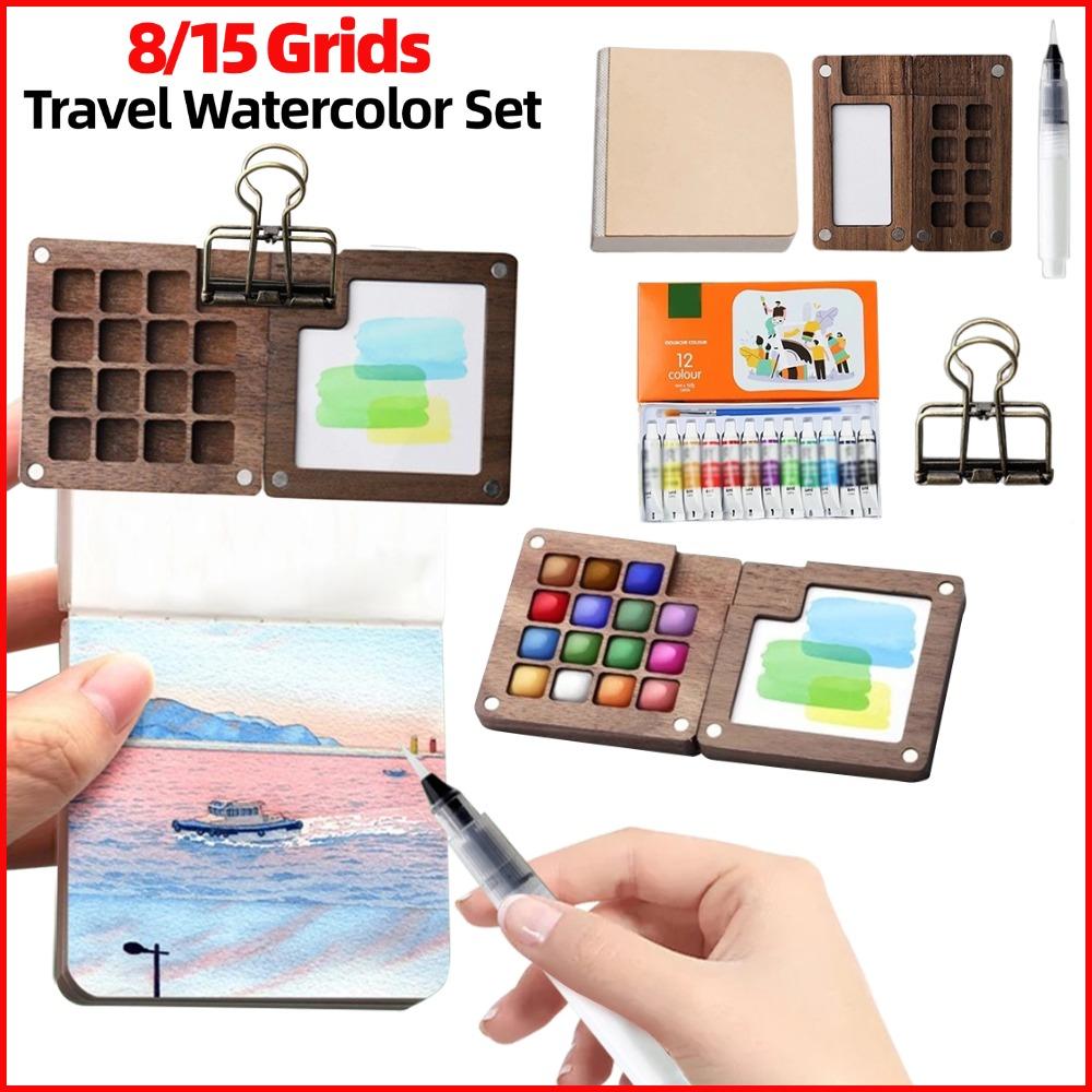 8/15 Grid Portable Sketchbook Palette Mini Wooden Color Palette Box Travel Watercolor Set For Artists Students Drawing Tools