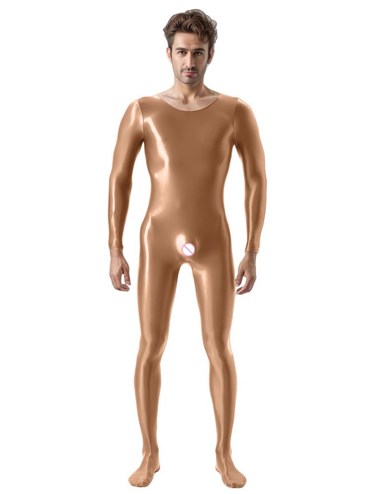 Sexy Men Candy Color Oil Glossy Shiny Shapping Bodysuit Stain Smooth Sheer See Through Sexy Tights Elastic Fitness Leotard