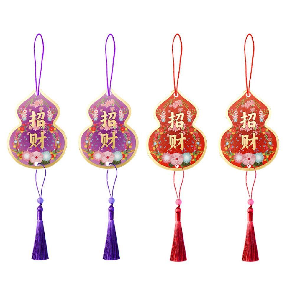 2pcs Cartoon Chinese Style Pendants Traditional Lucky Symbol Tree Hanging Tag Gold Stamping with Tassel Blessing Calabash Card