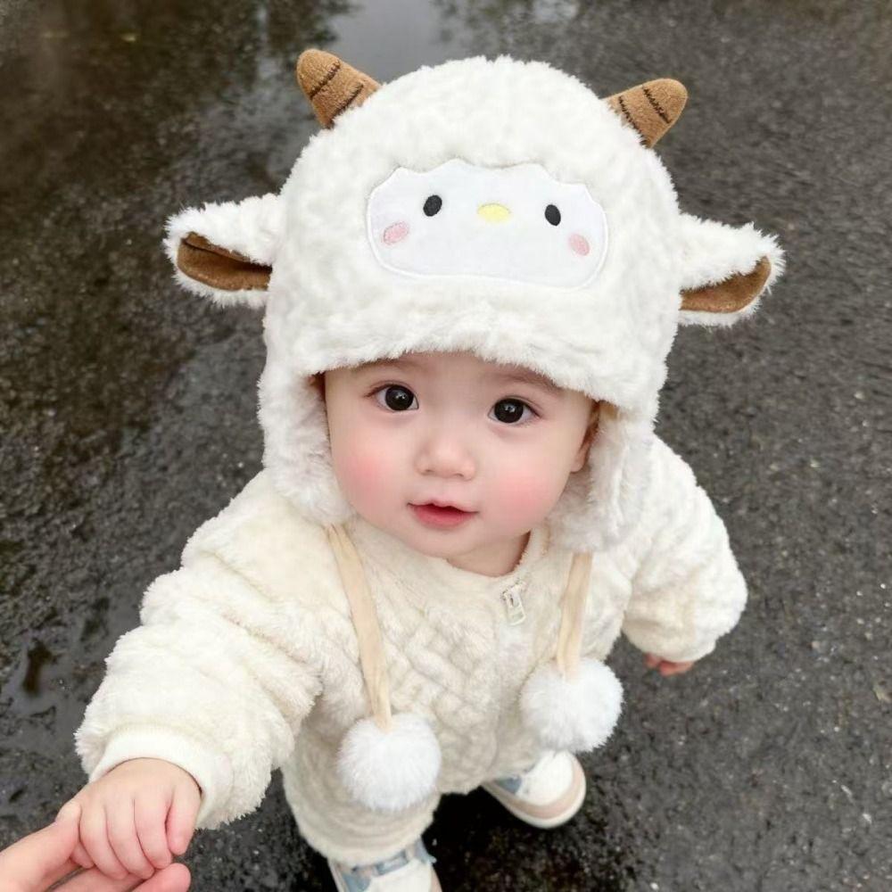 Kawaii Toddler's Sheep Hat Thickened Ear Protection Cute Sheep Hat Coldproof Windproof Baby Warm Caps Outdoor Activities