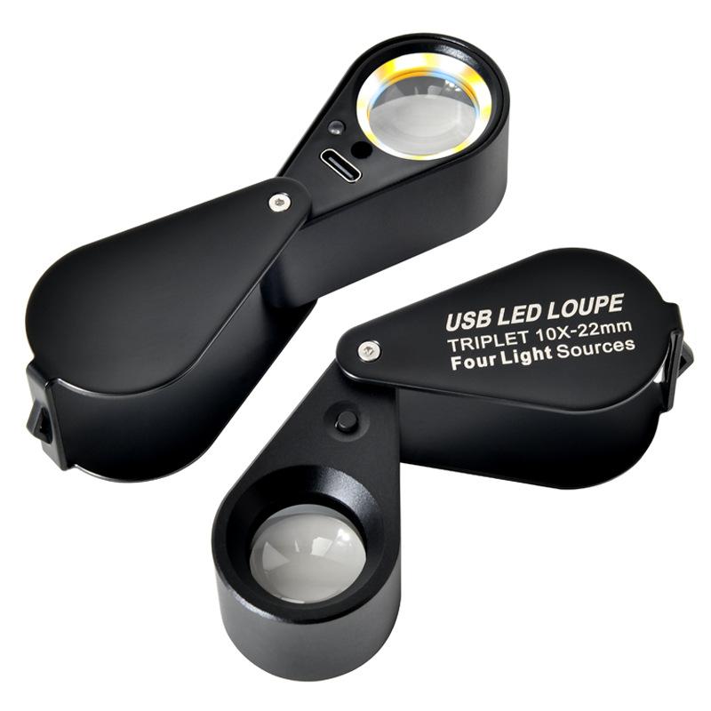 10X 20X Magnifier 13Led Fluorescent Identification, Charging Magnifying Glass, Diamond Identification