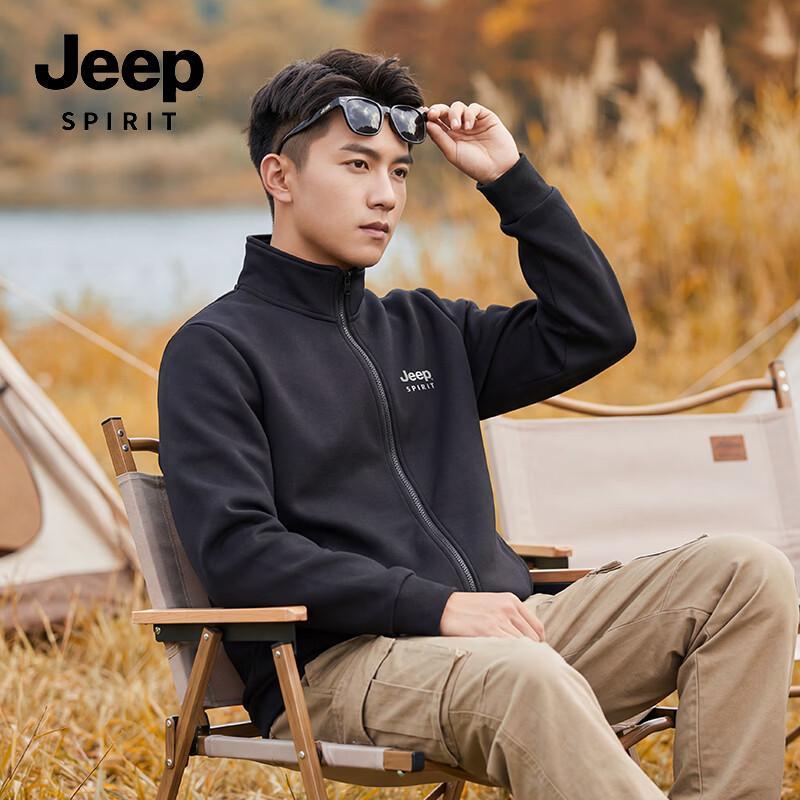 JEEP SPIRIT Unisex Spring Knit Stand Collar Jacket