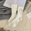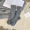 Woolen Socks, Heart-shaped Embroidered Socks, Double-threaded Bow, Striped, Thickened and Fleece Warm, Grey Pile Socks