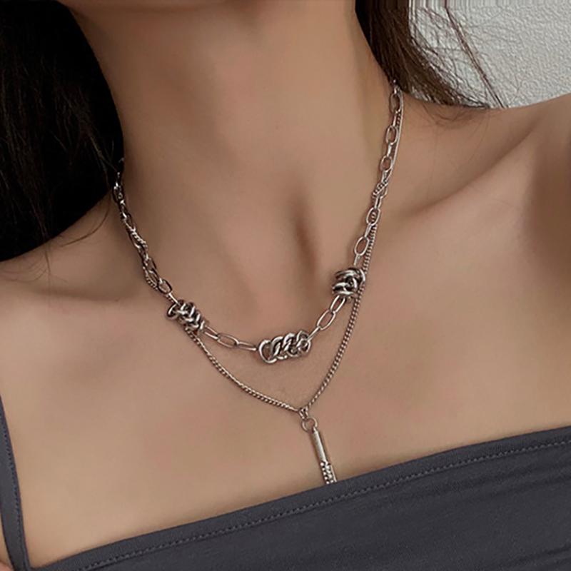 Vintage Handmade Sweater Necklace Party Jewelry Charm Women Korean Trendy Double-layered Chain Birthday Accessories Gift CLE