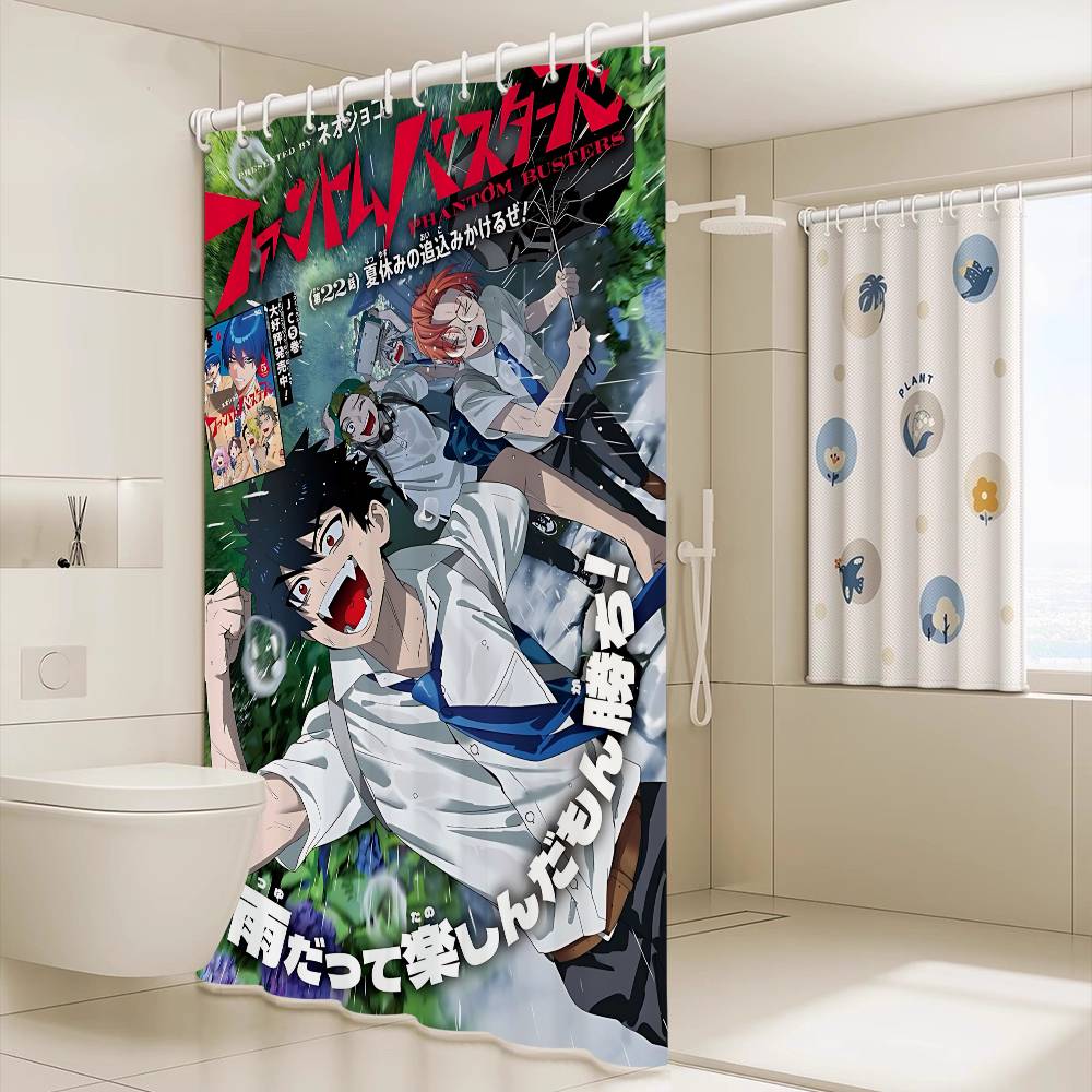 Japanese Anime P-Phantom B-Busters 1Pc Printed Shower Curtain Waterproof Washable With 12 Hooks Bathroom Shower Home Use