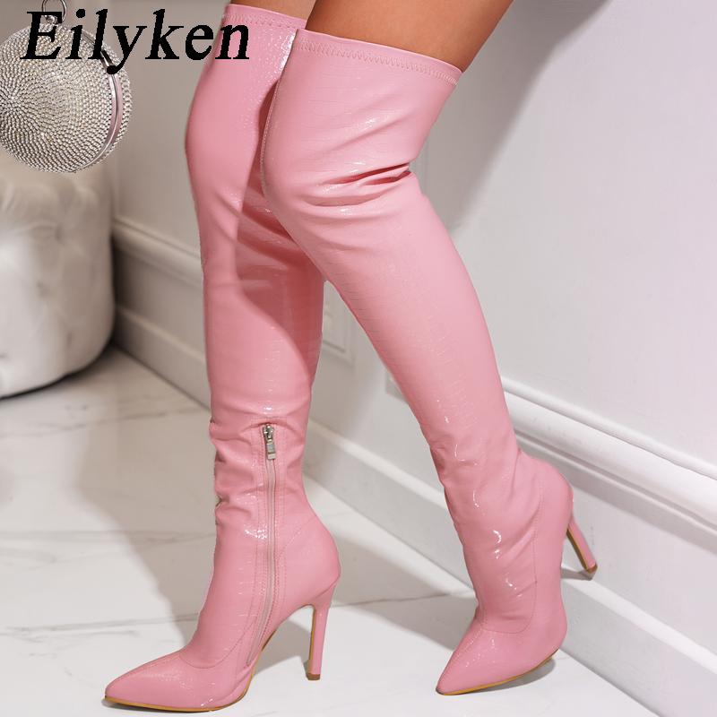 Fashion EilyKen Candy Color Women Over The Knee Boots Sexy Pointed Toe Thigh High Long Booties Steel Tube Dance Stiletto Shoes