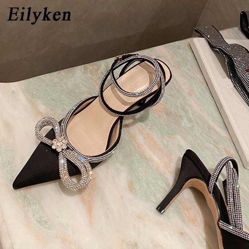 Fashion Eilyken Style Glitter Rhinestones Silk Transparent Pumps Women Crystal Bowknot Satin High Heels Party Prom Stripper Shoes