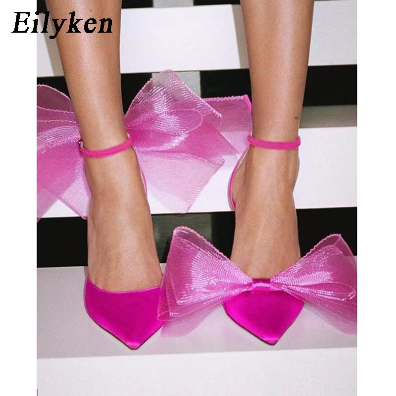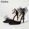 Fashion Eilyken New Style Pointed Toe Sandals Sexy Buckle Strap Cover Heel Women Spring Summer Mesh Butterfly-knot Wedding Pumps Shoes