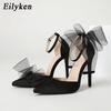 Fashion Eilyken Spring Big Butterfly-knot Women Pumps Sandals Pointed Toe Mules Ankle Buckle Strap Party Stripper High Heel Shoes
