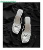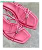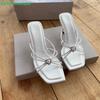 Fashion Heart-Shaped Crystal Square-Toe Sandals 2025 New Summer Open-Toe Stiletto Heels Thin Straps Slip On Slippers White/pink Sandals