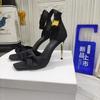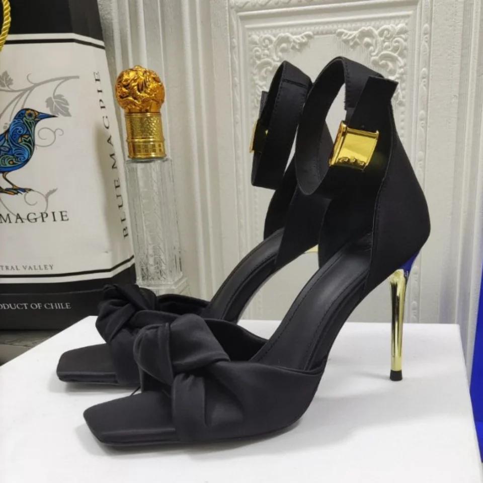 Fashion Satin Butterfly Knot Women Sandals Metal Thin Heel Sexy Square Toe High Heels Ankle Buckle Fashion Sandals Solid Color Shoe