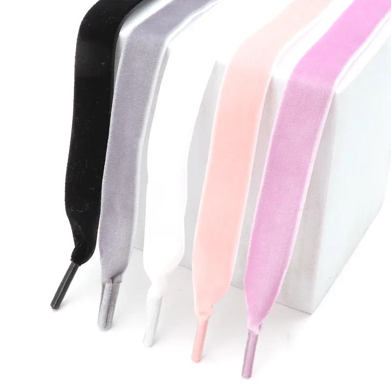 1.5CM Width Velvet Flat Shoelaces Snow Yarn Satin Silk Ribbon Shoelace Fashion Sneakers Shoe Laces for Woman 100/120/140/160cm