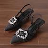 Fashion Denim Blue Women Sandals Elegant High Heels Slingback Pointed Toe Shoes Fashion Desiger Rhinestone Woman Pumps Wedding Shoes
