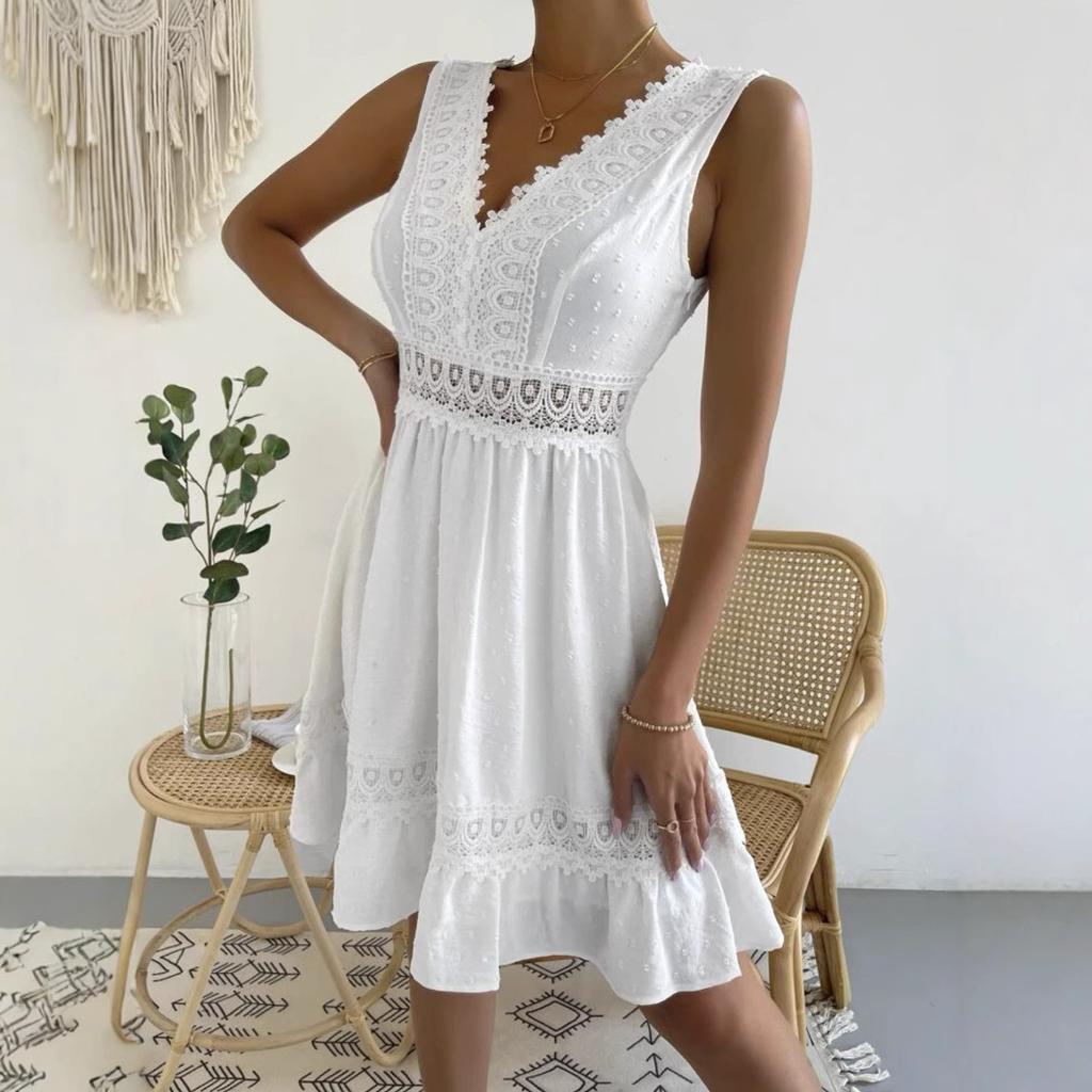 JKASHDK Women's Fashion Summer Spring Solid Color Print Sleeveless V-Neck High Waist Casual Dresses