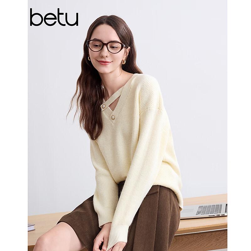 Betu Women's Winter V-Neck Asymmetric Hollow-Out Sweater