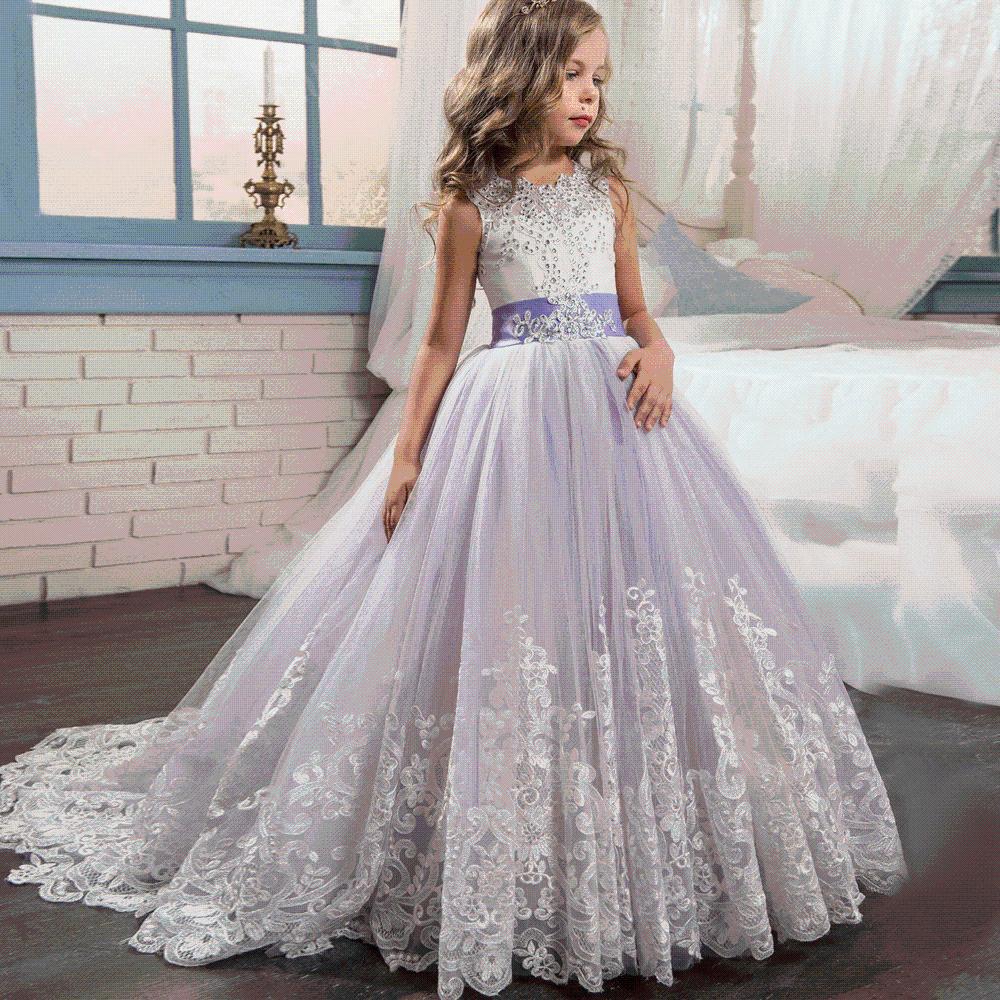 Experience the elegance and charm of this exquisite evening gown, designed for young princesses who love to shine. Crafted from a comfortable cotton blend, this beautiful dress features delicate lace and intricate beadwork that adds a touch of sparkle to any special occasion. The gown's floor-length design is complemented by a graceful train, perfect for making an unforgettable entrance. Ideal for formal events, this dress combines style and comfort, ensuring your little one feels like royalty.