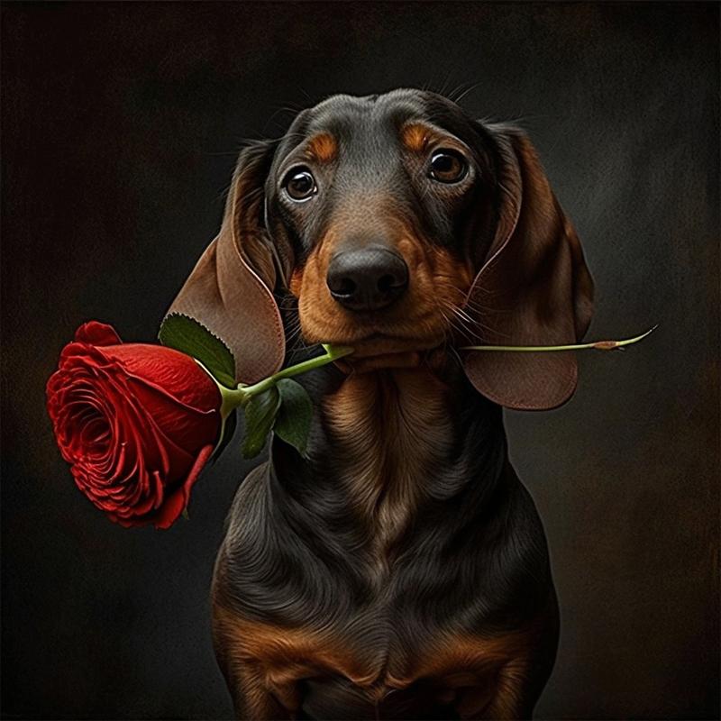 Round Diamond 5D DIY Diamond Painting "Hound Dog with Rose" Embroidery Cross Stitch Mosaic Decoration Gift