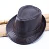 PU British Style Short Brim Jazz Caps Hats Fashion Middle-aged and Elderly Autumn and Winter Outdoor Leisure Gentlemen Jazz Hat for Men Panama Hat