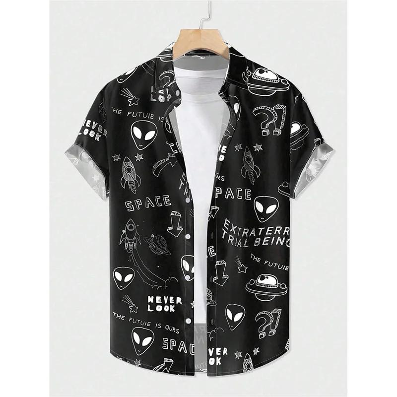 Rocket UFO Pattern Aloha Shirt for Men Women Artistic Abstraction 3D Printed Blouse Kid Short Sleeve Lapel Loose Hawaiian Shirts