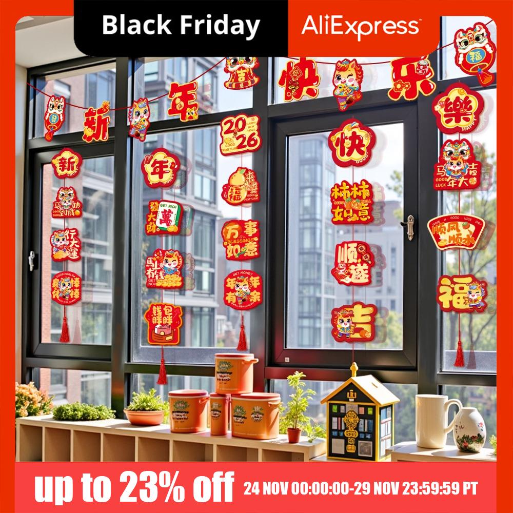2026 Horse Year New Year Hanging Pendants Traditional with Tassel Fu Character Wall Decoration Blessing Zodiac Horse