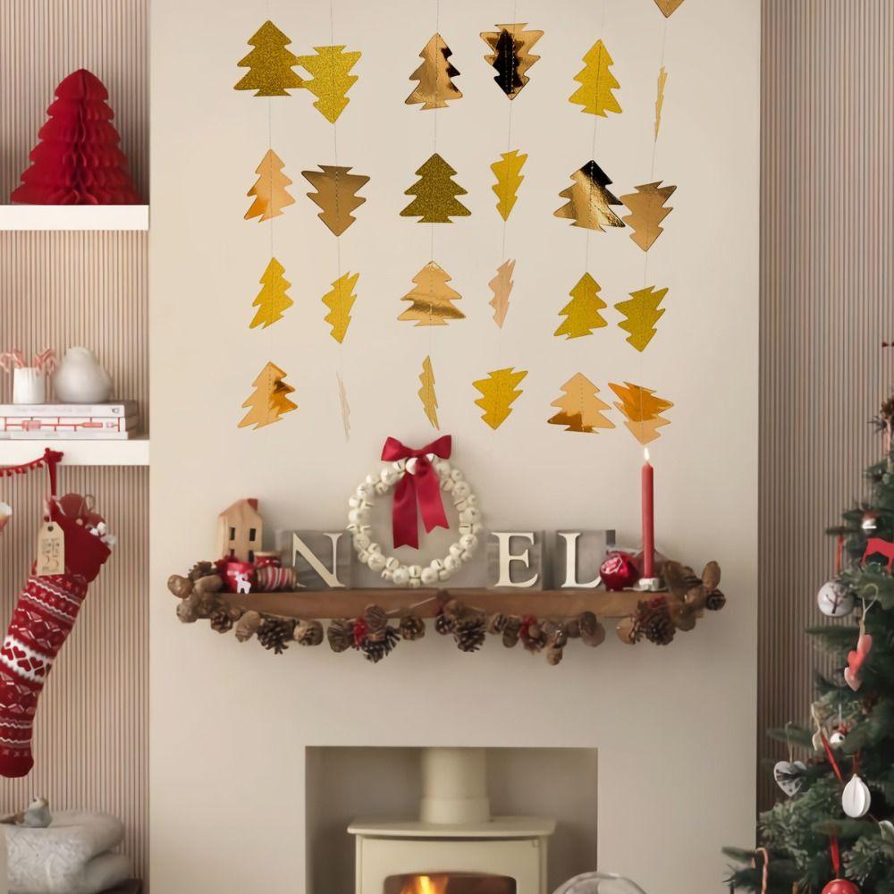 Green Christmas Tree Hanging Garland Festive Woodland Theme Christmas Tree Ornaments Reusable Paper Hanging Backdrop Decor