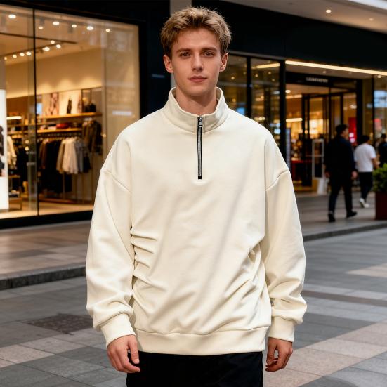Men Quarter Zip Sweatshirt Mock Neck Fleece Lined Pullover Solid Color Loose Casual Warm Sweatshirt for Winter Sports Street Party Wear