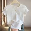 Summer Cotton Linen Round Neck Printed T-shirt Casual Short-sleeved Fashion New Style Slim Top
