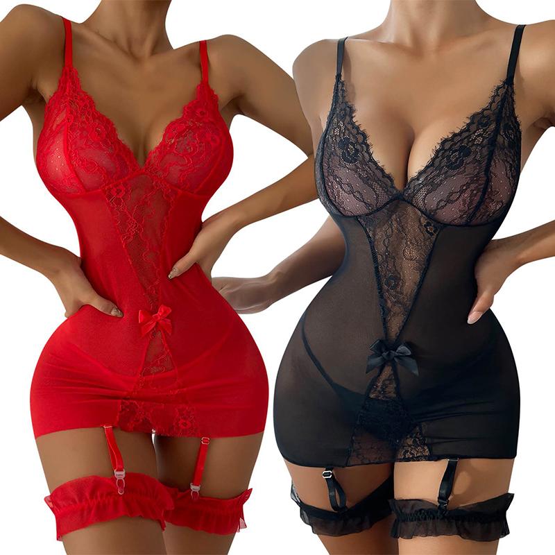 Lace Mesh See-through Camisole Dress, Sexy And Seductive, Leg-baring, Erotic Lingerie,Backless And Cleavage-revealing Tights