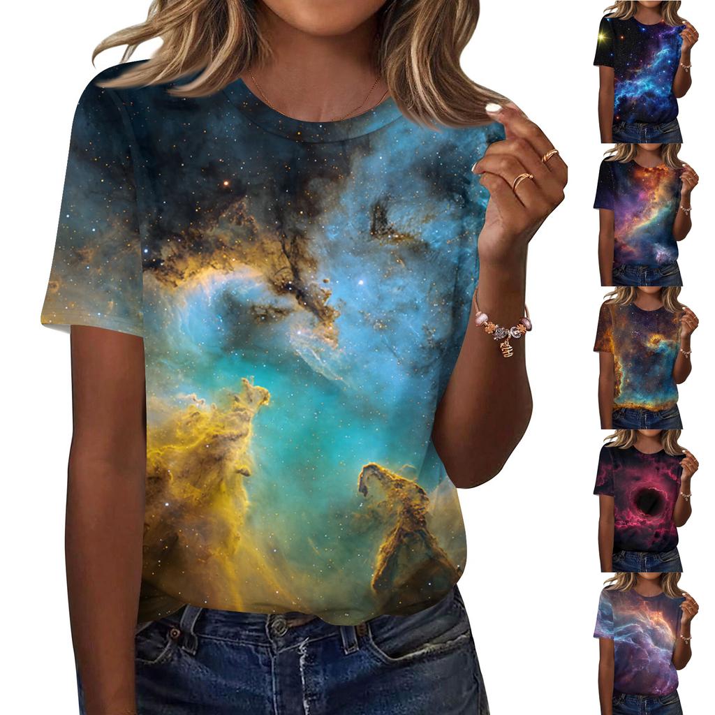 Women's Fashionable Casual Short Sleeve Print Round Neck Pullover Top