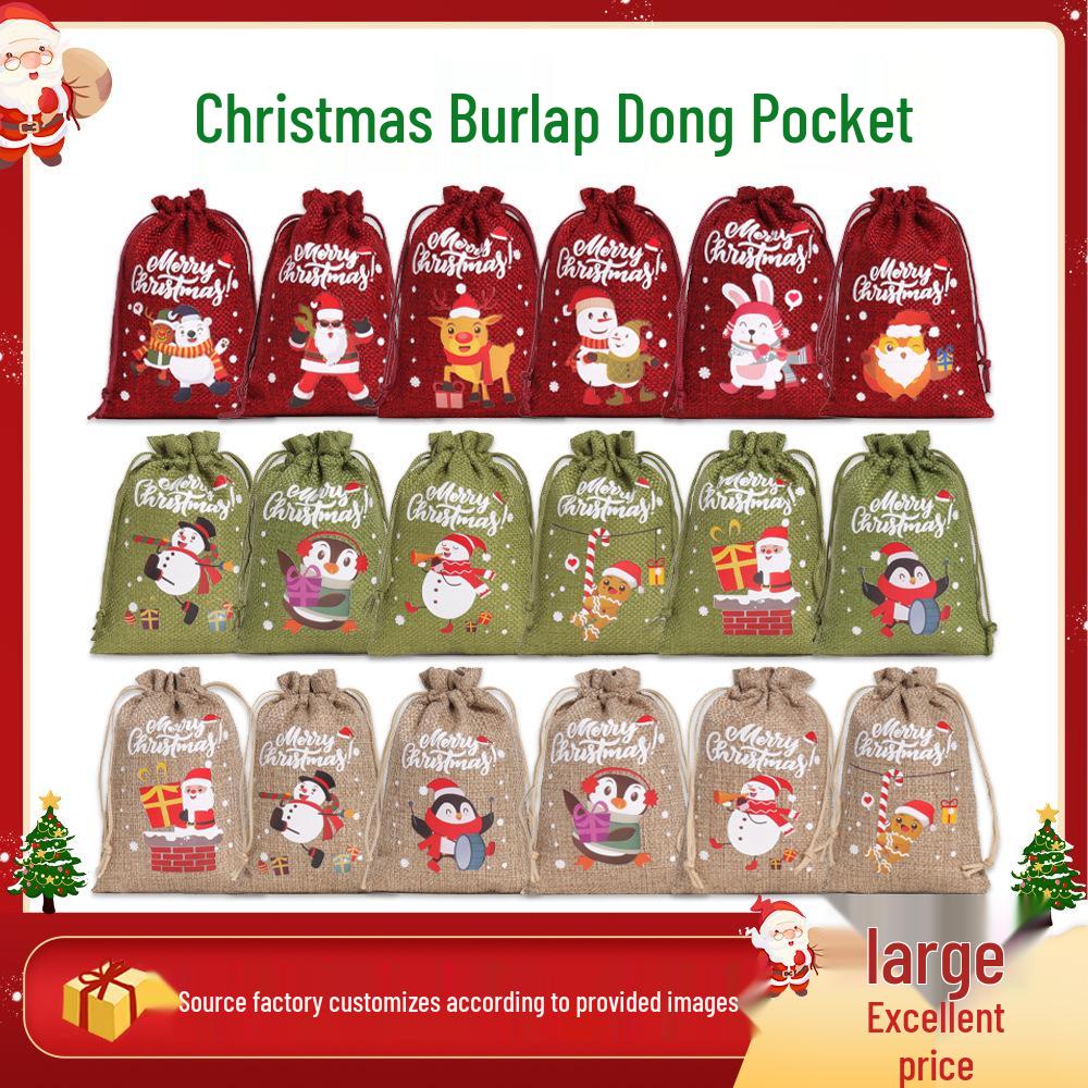 2025 Christmas Burlap Drawstring Gift Bags - Small Cloth Candy Pouches
