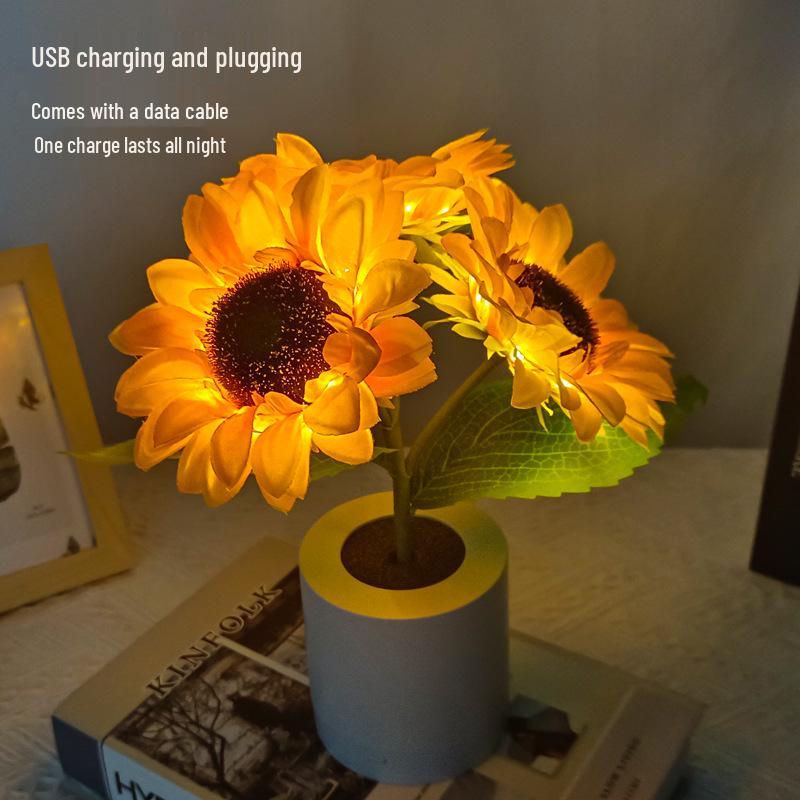 Sunflower Night Light: Rechargeable LED Bedroom Decoration Atmosphere Lamp, Ideal Birthday Gift for Girls.
