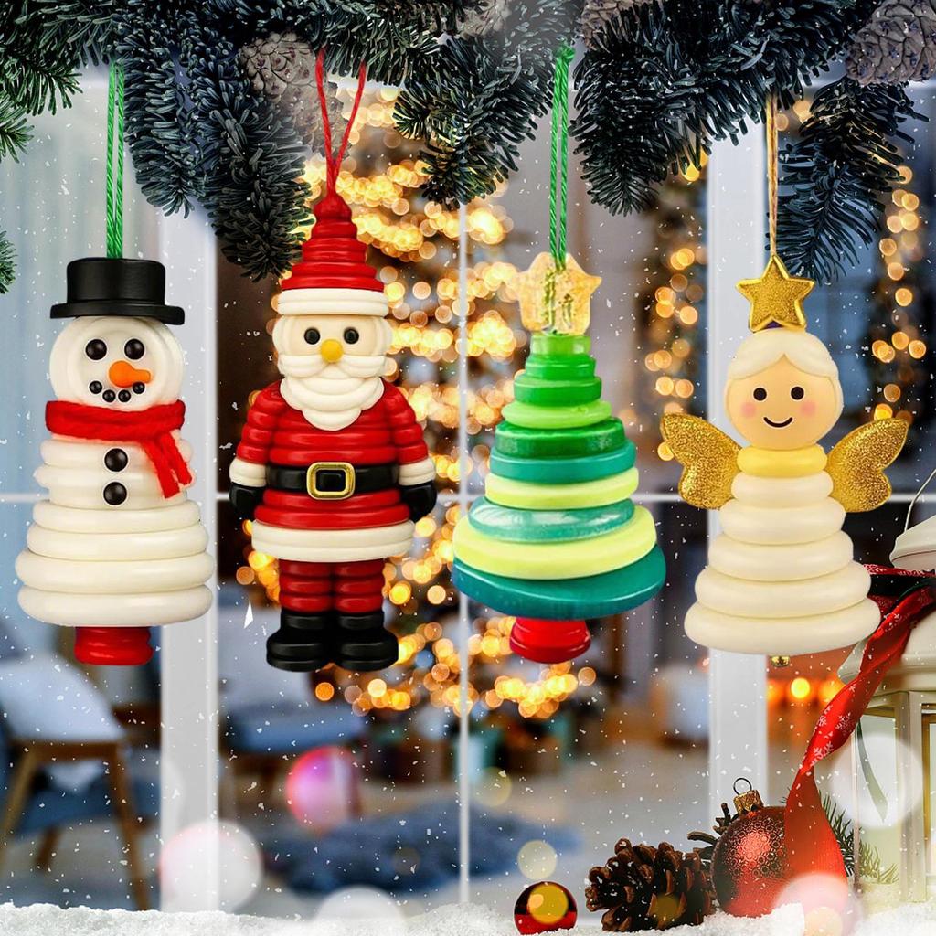 Button Christmas Tree Ornament Kits Hangable Santa Angel Snowman Christmas Tree Pendant Pendant Charm Decoration Craft Making