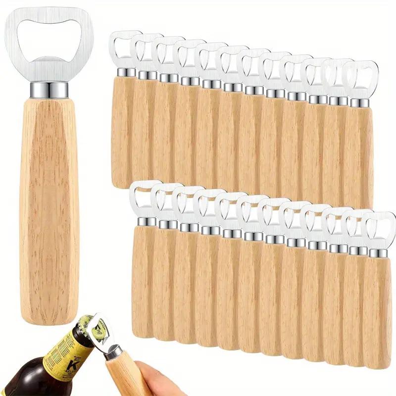 1-40PCS Wooden Handle Beer Bottle Opener Handheld Bar Tool for Home Kitchen Wine Soda Water Glass Cap Opener