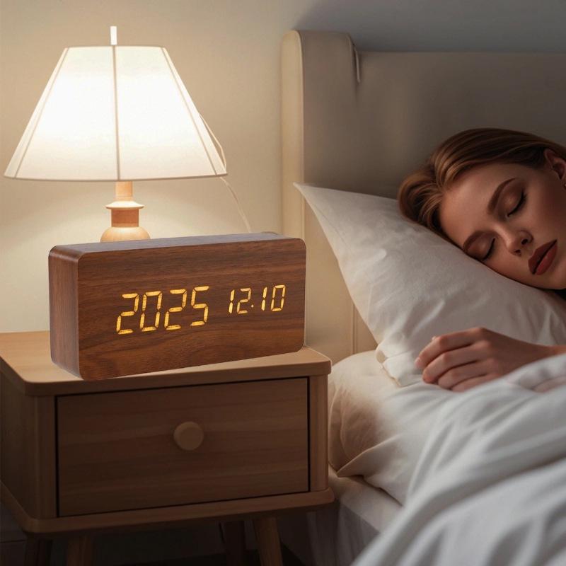Minimalist LED Wooden Clock: Smart USB-Powered Alarm & Digital Display for Bedside or Desk.