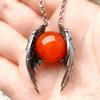 Ghost Wings Vintage Necklace: Exquisite Natural Stone & Unique Antique Silver Pendant
