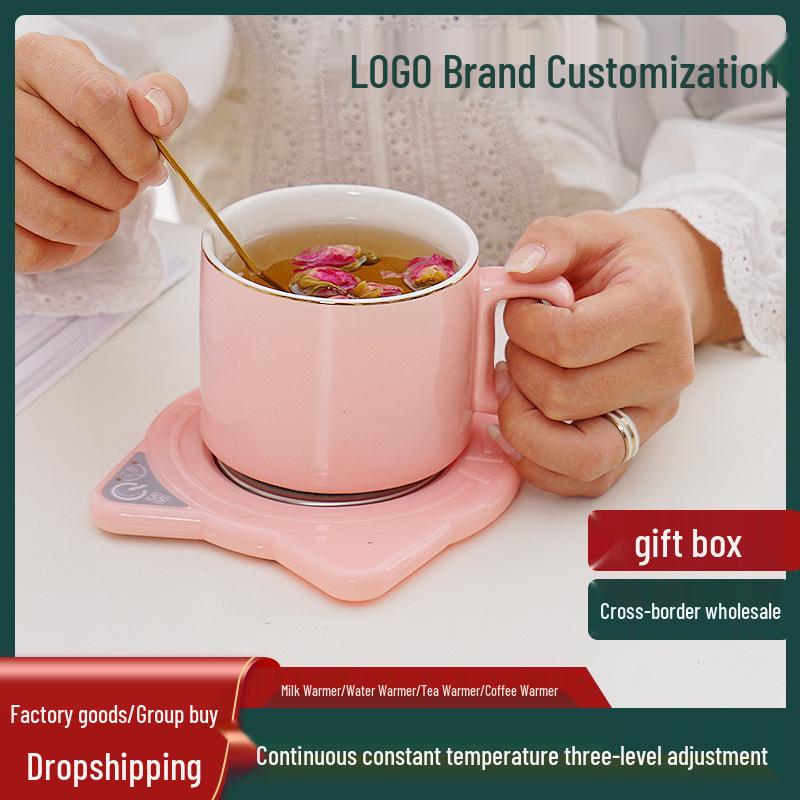 55° Cat Ear Ceramic Coaster Set: Constant Temperature Warmer for Baby Milk & Drinks
