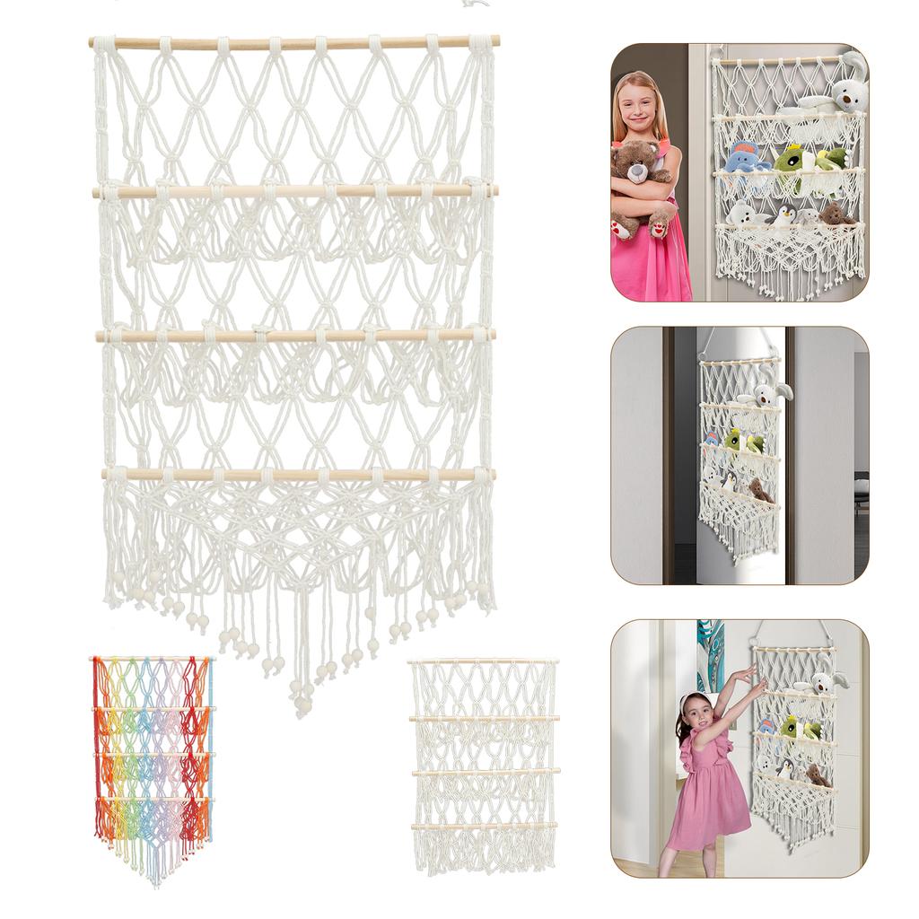 Stuffed Toy Storage Hammock 3-Layer Macrame Storage Net Washable Large Capacity Mesh Plush Toy Storage for Kindergarten Playroom
