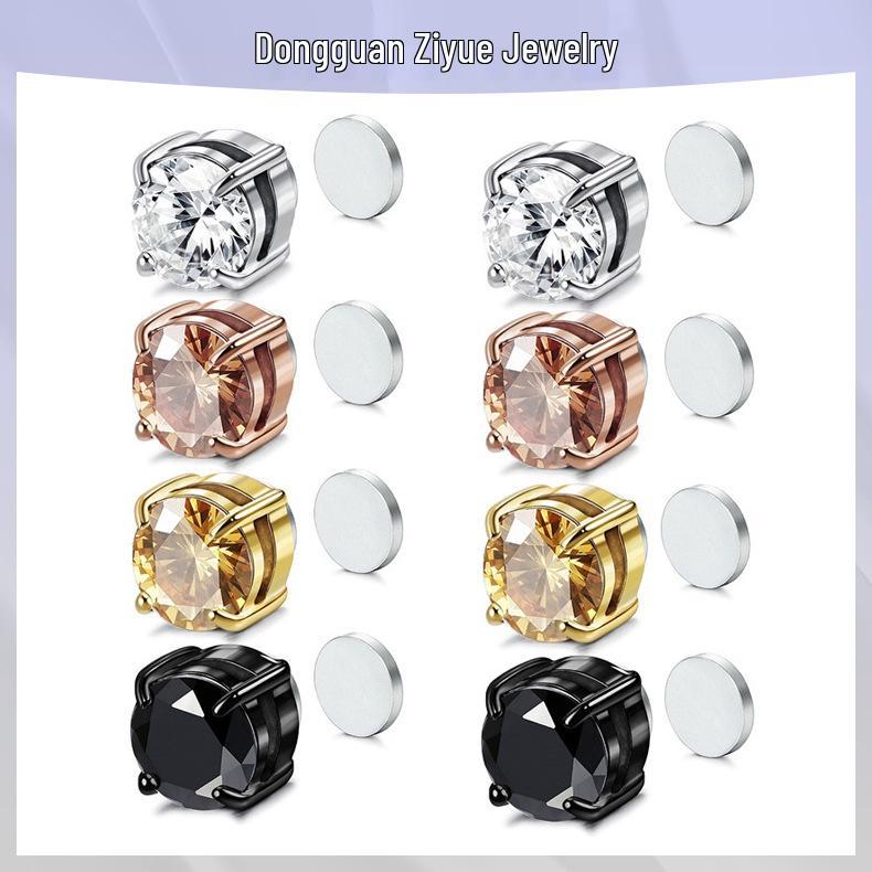 Zircon Magnet Ear Clips for Non-Pierced Ears - Unisex Stud Earrings